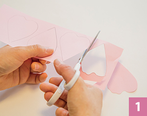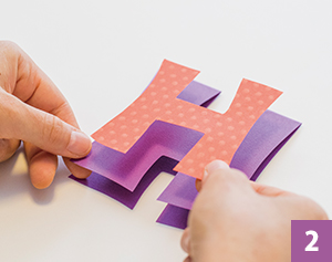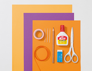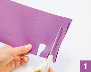 型紙を使い、土台とその上に貼るパーツを作ります。土台用は画用紙を折り曲げ、2枚重ねてカットします。