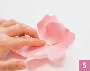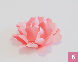 ❹の上に2段目6枚分を貼ります。このとき1段目の花びらと角度をずらして貼ります。