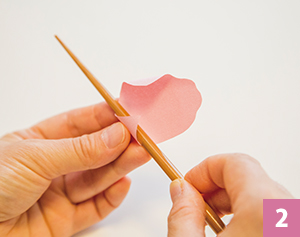 花びらに箸を巻きつけてカールします。花びらの下端は内側へ、花びら先端は左右それぞれ反対方向に巻きます。