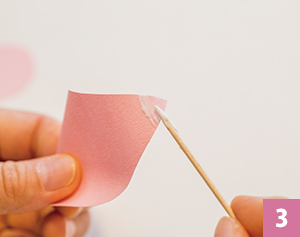 爪楊枝を使い、花びらの下端に木工用ボンドを塗ります。