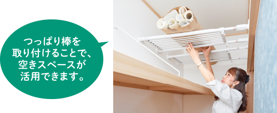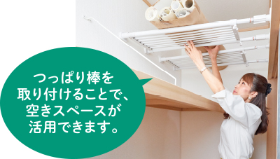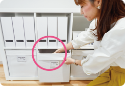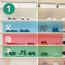 下段から上段へと順を追って家族の身長別になるよう、使いやすい位置に収めます。子どもが自分で出し入れできるようになり、家族全員が格段に使いやすくなります。