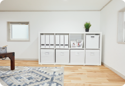収納棚を上手に活用し、床には極力モノを置かないこと。部屋の真ん中は家族が集えるように空けておきましょう。