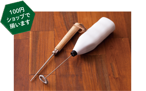 ※ミルクフォーマーやアイスピックまたは竹串など100円均一ショップでも揃えられる道具を使って、手軽にラテアートが楽しめます。