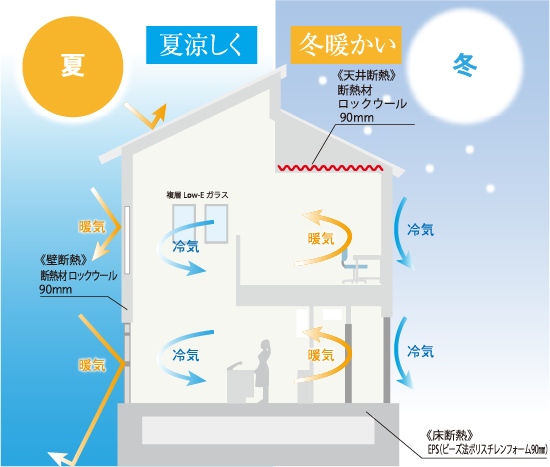 高気密・高断熱のヘスタホームは「夏涼しく」「冬暖かい」