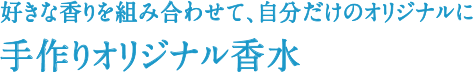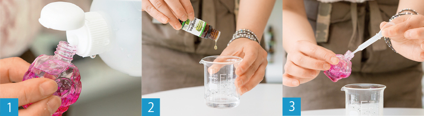 お好みのアロマオイルを調合してオリジナル香水づくりにチャレンジ。直接お肌にスプレーすることを考え、アロマオイルは100%天然のエッセンシャルオイル(精油)を使うとよいでしよう。