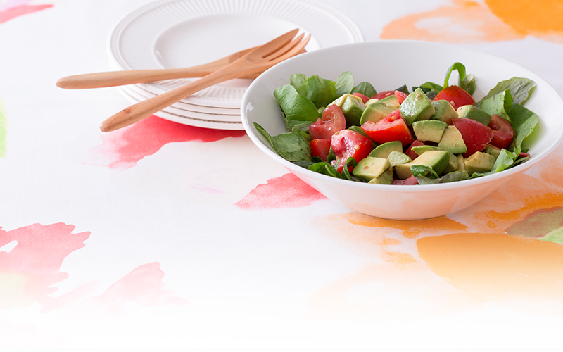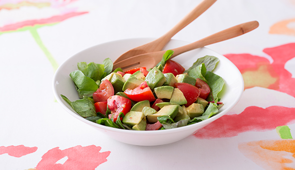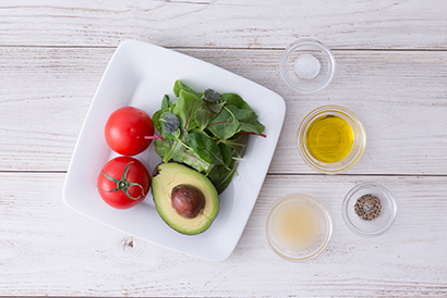 トマトとアボカドの、相性抜群の組み合わせ。味付けはレモン汁と塩こしょうでシンプルに仕上げました。