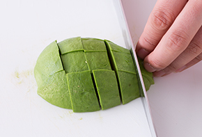 トマトとアボカドを一口大に切ります。