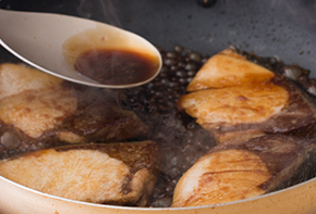 脂ののったブリにバルサミコ酢を使用したソースでいただきます。