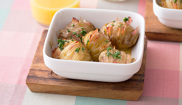 アコーディオンポテトとも呼ばれるスウェーデン料理をころころの新じゃがで。