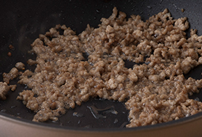辛いのがお好きな方はひき肉を炒めるタイミングで豆板醤小さじ1又は唐辛子1本を加えてください。