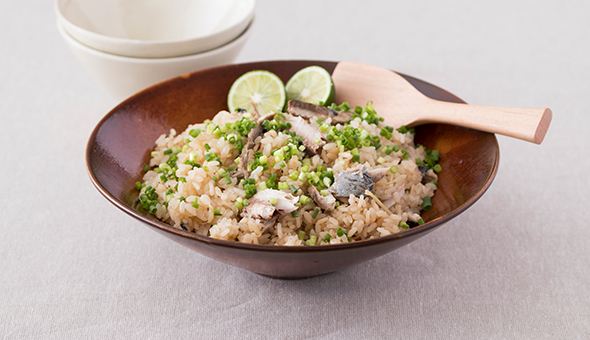 秋の味覚の代表、さんま。一度焼いて骨ごと炊きこむことで旨みが増します。
