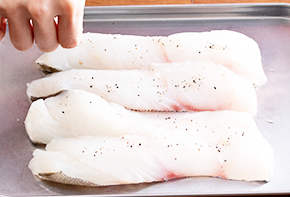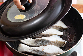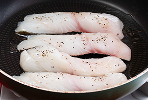 フライパンにサラダ油を熱し、中火でたらを焼きます。