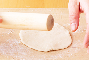 ③を8等分にして丸めて円形にのばし、④を包みます。