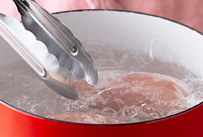 手軽に作れるサラダチキン。見栄え良く料理にもアレンジしやすい丸い形に。しっとりとした仕上がりです。