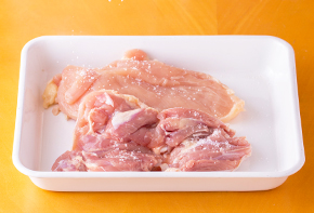 鶏肉は余分な脂と皮を切って取り除き、塩を振っておきます。