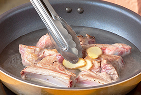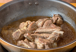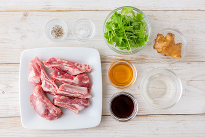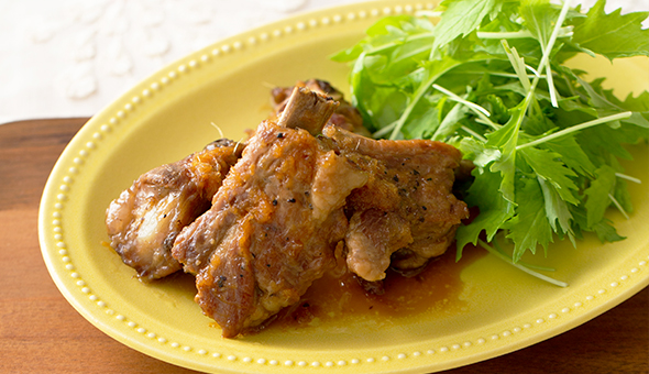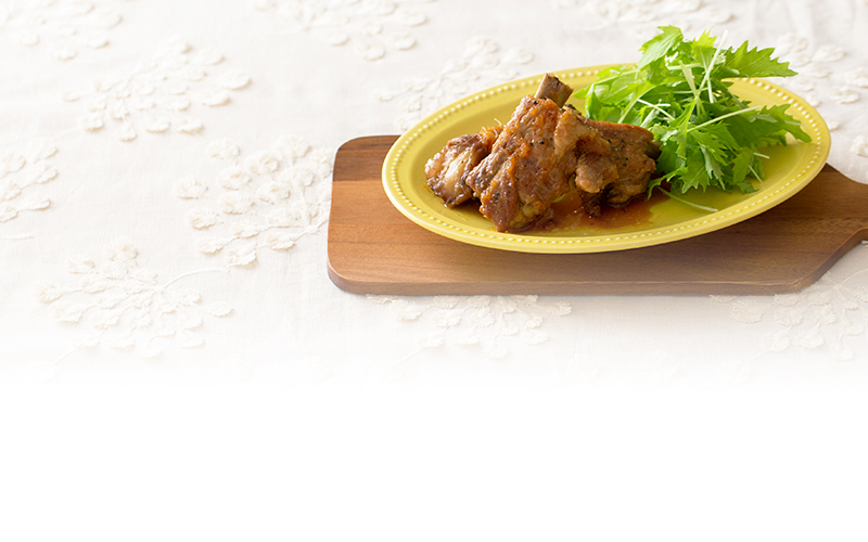 ベビーリーフと共に器に盛って完成です。ゆっくり煮込むのも良いですが、圧力鍋を使用すると簡単に早く作れます。