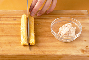 好みで切り分け、器に盛って完成です。アボカドやカニ缶などでアレンジするのもおすすめです。切らずにそのままで恵方巻にも。