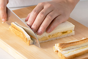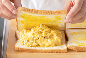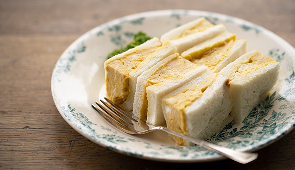 まるでちゃんと巻いたようなだし巻き卵サンドです。作り立てが一番美味しいので、出来立ての熱々をぜひ!