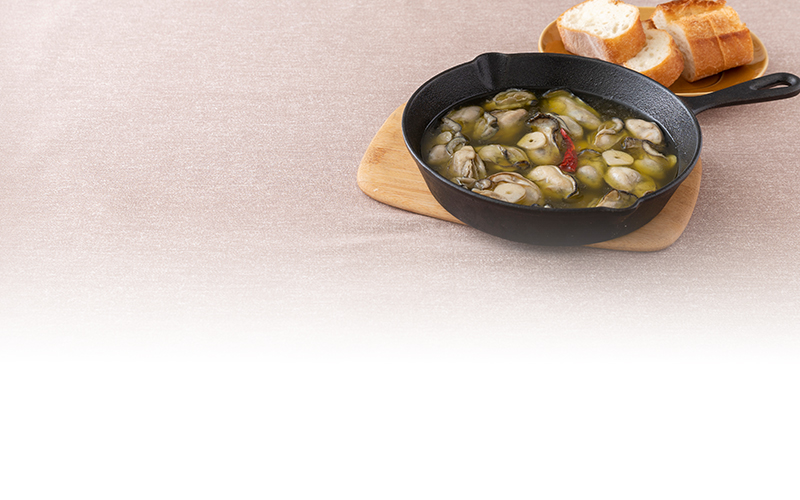 にんにくとオリーブオイルで牡蠣を煮ました。牡蠣の下処理をしっかりとすれば臭みなくおいしくいただけます。