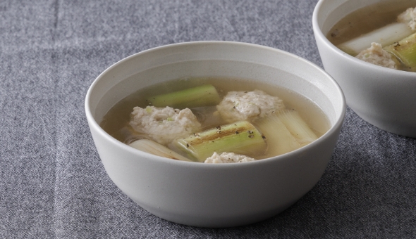 器に盛りつけたら完成です。一度白ねぎを焼くことで香ばしい香りが加わり、寒い時期に体が温まるスープです。使用するスープの素を好みのものに変えたり、和風だしにしてもほっとする味わいに仕上がります。白ねぎの甘みがおいしい冬の時期にぜひお試しください。
