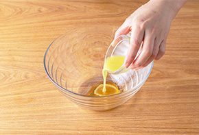 大きめのボウルにはちみつ、生姜汁、②を入れて混ぜます。