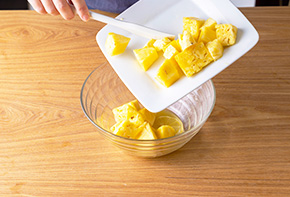 ①のパイナップルを入れます。