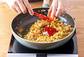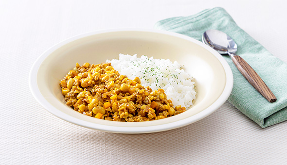 器にごはんとカレーを盛り付けて、ドライパセリを振ったら完成です。辛味が足りなければカイエンペッパー、唐辛子やガラムマサラなどを振ってスパイシーに仕上げても◎。また、茹でたまごやチーズを添えたり更に美味しくアレンジしてもお楽しみいただけます。