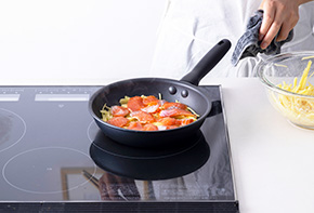 フライパンにオリーブオイルを温め、半量のじゃがいもを広げ入れす。その上に②の鮭を並べ、さらに残りのじゃがいもをかぶせます。
