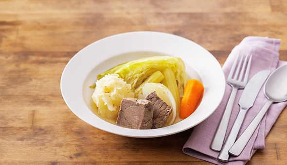 塩と黒こしょうで味を調えて器に盛って完成です。好みでオリーブオイルをまわしかけて香り付けしてもよいでしょう。温かいうちにお召し上がりください。