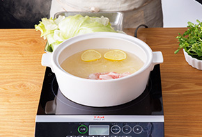 具材に火が通ったら器に盛り、好みで黒こしょうを振って完成です。レモンは加熱しすぎると苦味が出ることがあるので適宜で取り出します。好みで残りのレモンスライスを入れて加減してください。