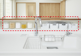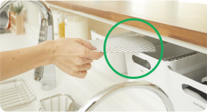 「アクション」とは、動作のこと。シンク前にケースを置いて収納しておけば、しゃがむことなくワンアクションで取り出せます。