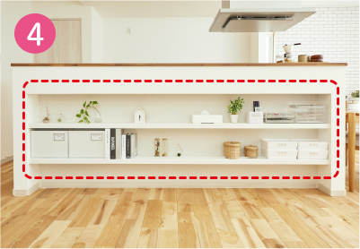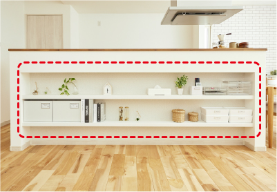 家族で共有するモノがすぐ出し入れできるので、カウンター下に収納スペースがあると便利!
