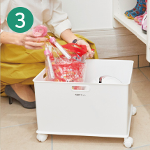 下段から上段へと順を追って家族の身長別になるよう、使いやすい位置に収めます。子どもが自分で出し入れできるようになり、家族全員が格段に使いやすくなります。