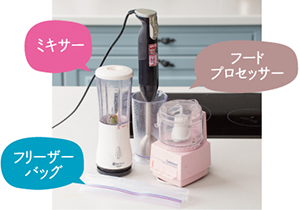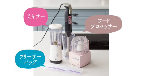 ※道具はミキサーやハンドミキサーのほか、フードプロセッサーでもOK。またバナナやいちごなど柔らかい果物などはフリーザーバッグでも作れます。