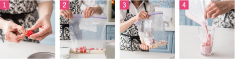 フリーザーバッグ底の角を切り、グラスに注ぐとカンタン!