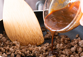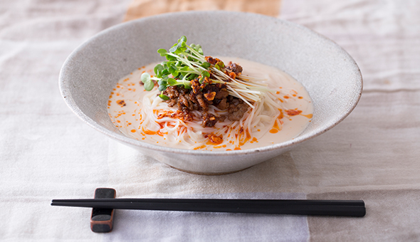 豚ひき肉はフライパンで弱火から炒めると、豚の脂がでてカリッとヘルシーなそぼろができます。お好みでトッピングの野菜を変えたりしてアレンジしてみてください。