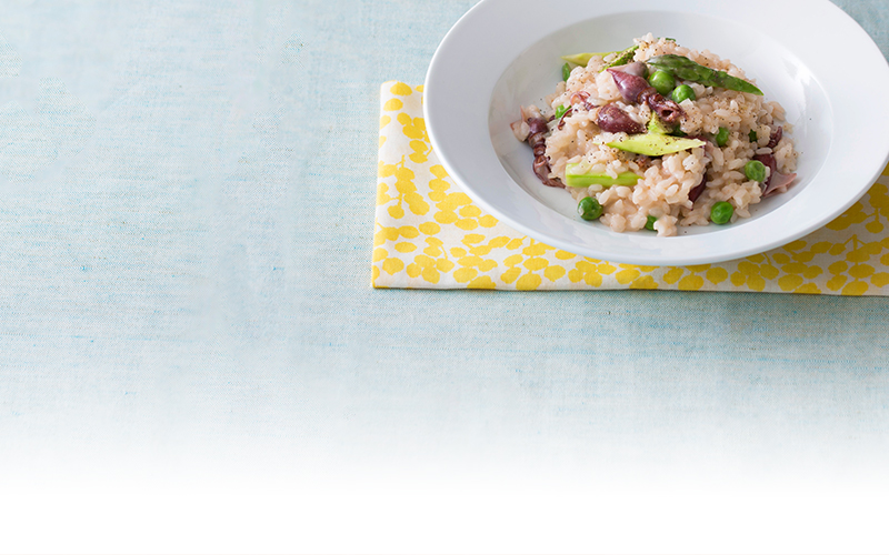お米から炊く本格レシピ。具材の旨みを移したスープで炊いたリゾットはレストランのような味わいに。