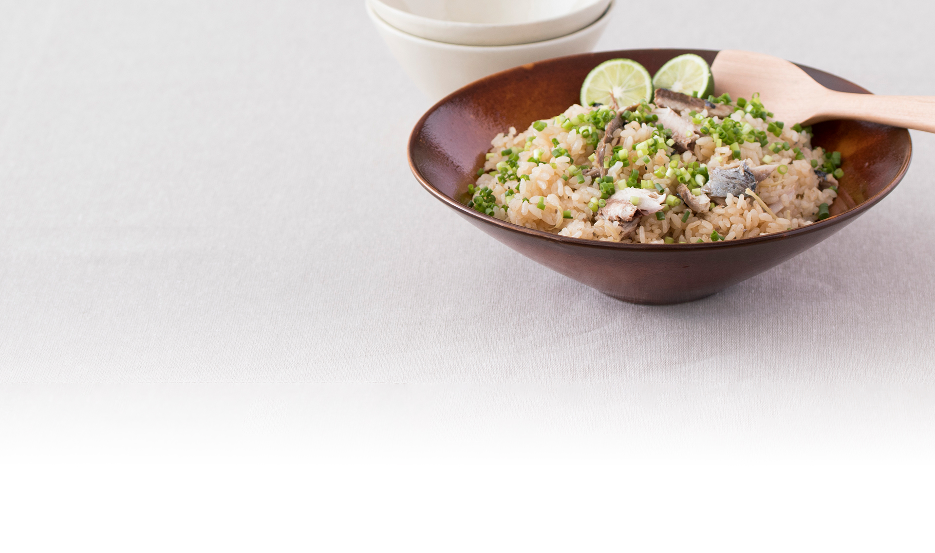 炊きあがったらさんまの骨をとり、身を荒くほぐします。全体をよく混ぜて小ネギをちらし、好みですだちを絞っていただきます。