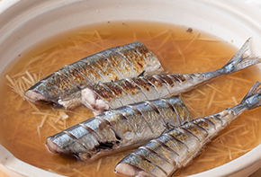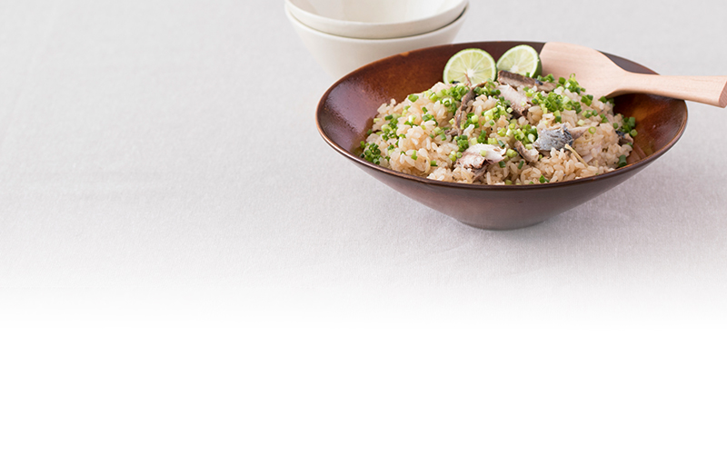 秋の味覚の代表、さんま。一度焼いて骨ごと炊きこむことで旨みが増します。