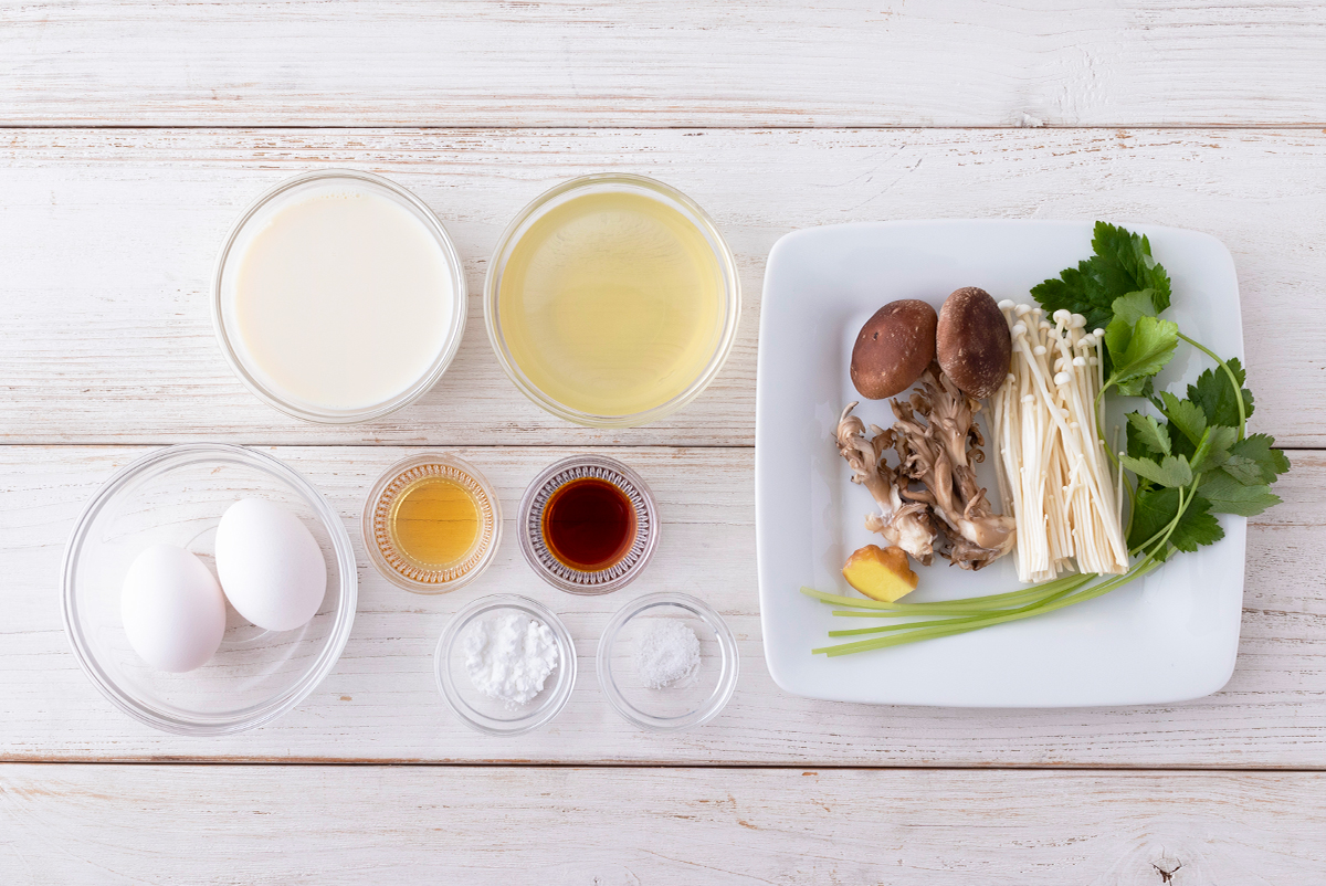 豆乳を入れることで「す」(蒸し上がった時に出来る気泡)が入りにくくなりますが、器に卵液を注いだらすぐに蒸してください。きのこあんを好みの食材に変えても楽しめます。