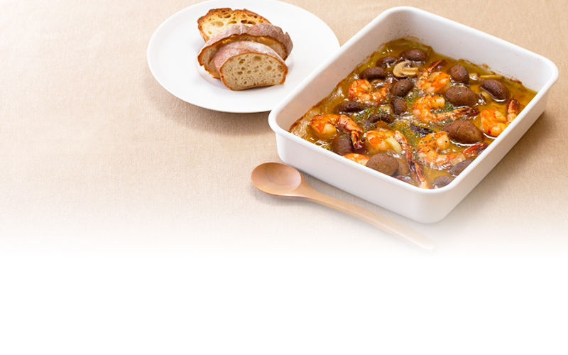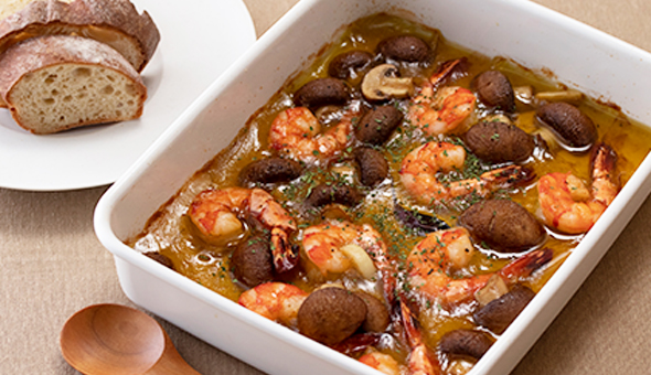 エビとマッシュルームのアヒージョ
