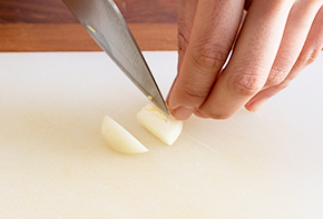 にんにくを半分に切ります。