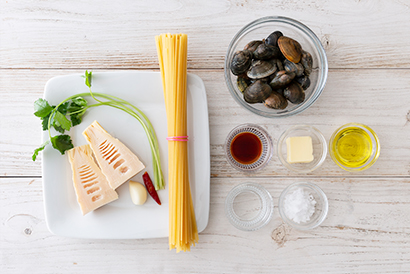 あさりの旨みとバターしょうゆの香りで和風に仕上げました。