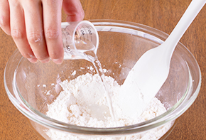 ボウルに[A]を混ぜ合わせて、ゴムベラでひとかたまりにします。水気がなくなってきたら滑らかになるまで1~2分こねます。