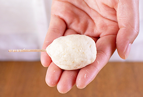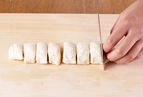 生地を丸く伸ばし、①のウインナーを包んで形を整えます。