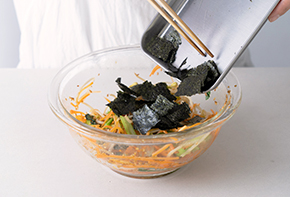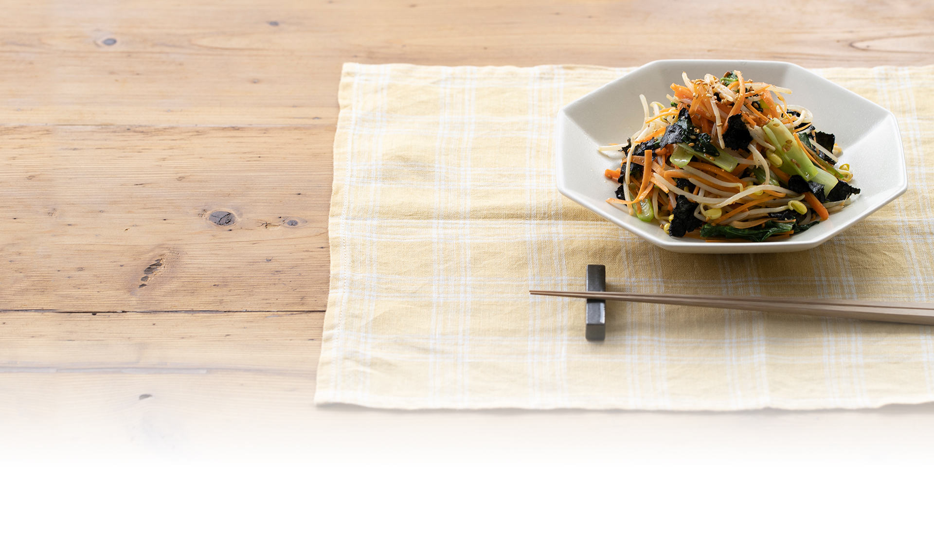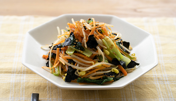 ごま油と焼きのりが豆もやし独特のくさみを抑えてくれるので、お子様でも美味しくいただけます。