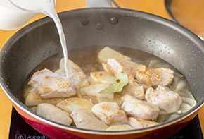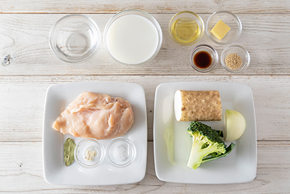 小麦粉を使用せず、長芋でとろりと優しいとろみをつけました。パンにもご飯にも合う一品です。