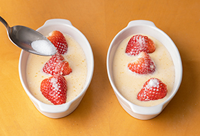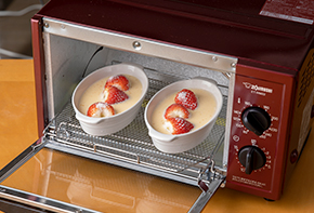 表面に焼き色がつき、卵液が固まっていたら完成です。焦げるようならアルミホイルを被せて加熱してください。