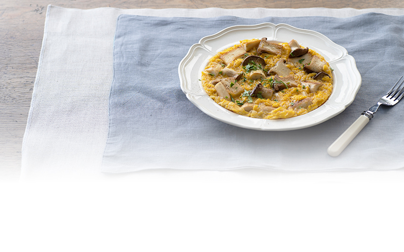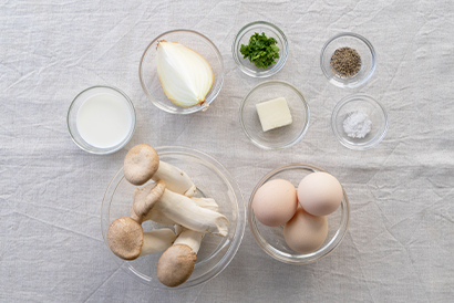 ジューシーなエリンギとふわふわ卵でごちそうオムレツです。