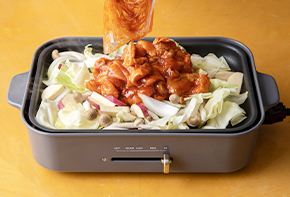 野菜もたくさん入れた、ボリュームおかずです。ホットプレートで作ると簡単。アウトドアご飯にもおすすめです。